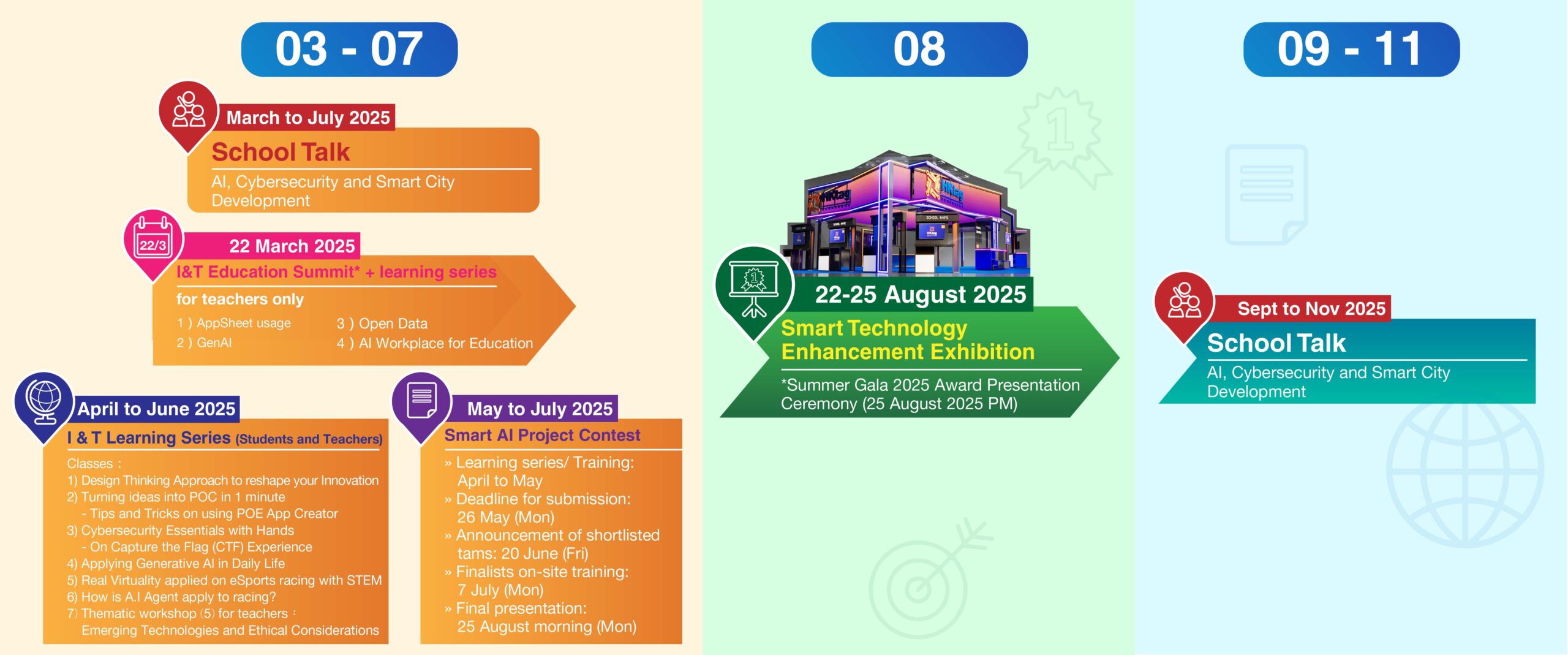 - I&T Education Summit + a series of I&T learning for teachers on 22 March 2025, and from April to June other learning series for students ;