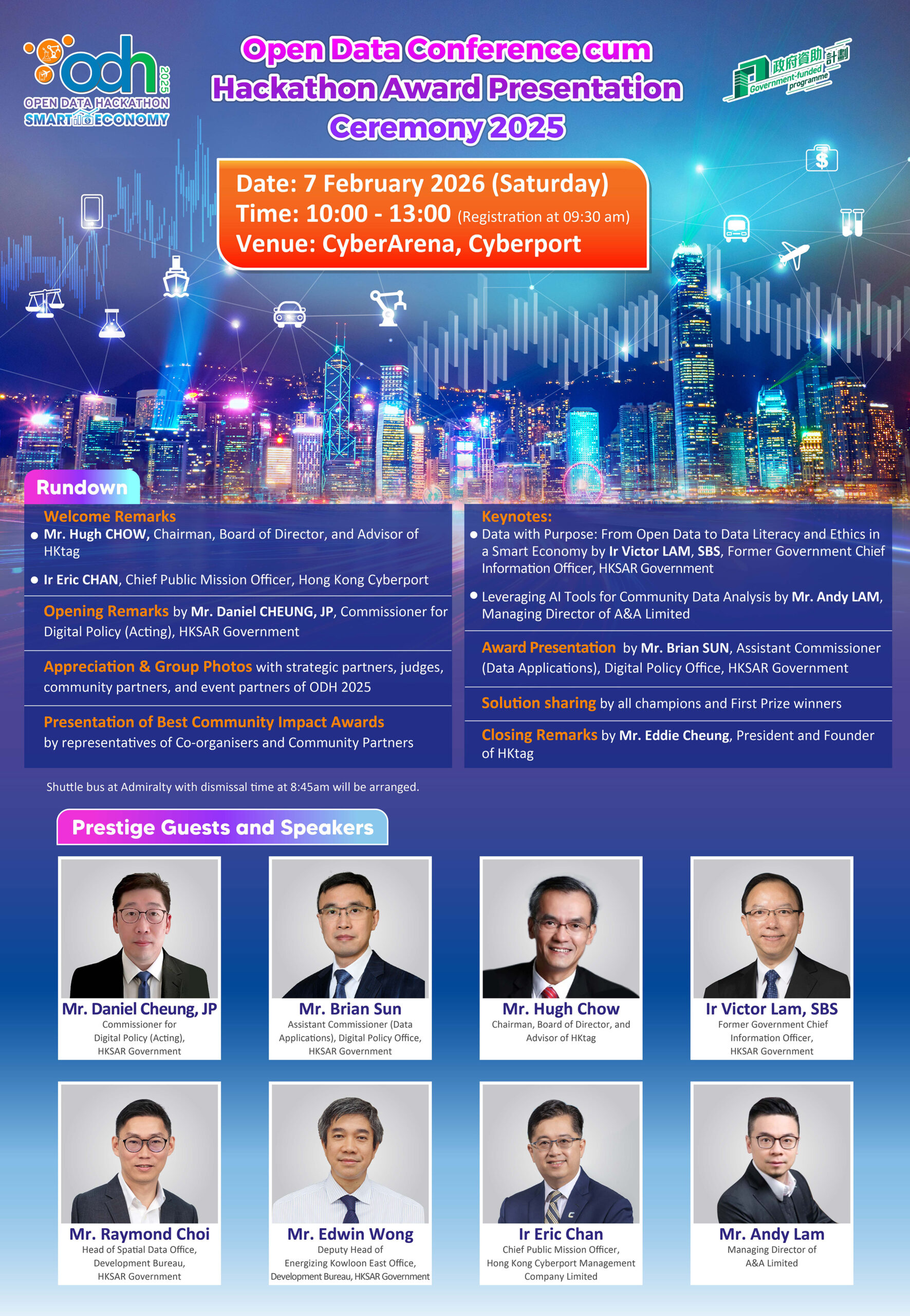 2025年以「智慧經濟」為重點延續此活動,將進一步支持香港智慧城市發展,確保市民能充分受惠於數碼轉型。此主題契合香港推動數碼轉型與創新驅動增長的策略。面對全球經濟挑戰,善用開放數據可提升營運效率、促進金融科技發展及推動智慧城市解決方案——這些都是維持香港競爭力的關鍵。此舉亦支持香港構建活力充沛的科技型經濟願景,在快速演變的數碼環境中確保韌性與長遠繁榮。