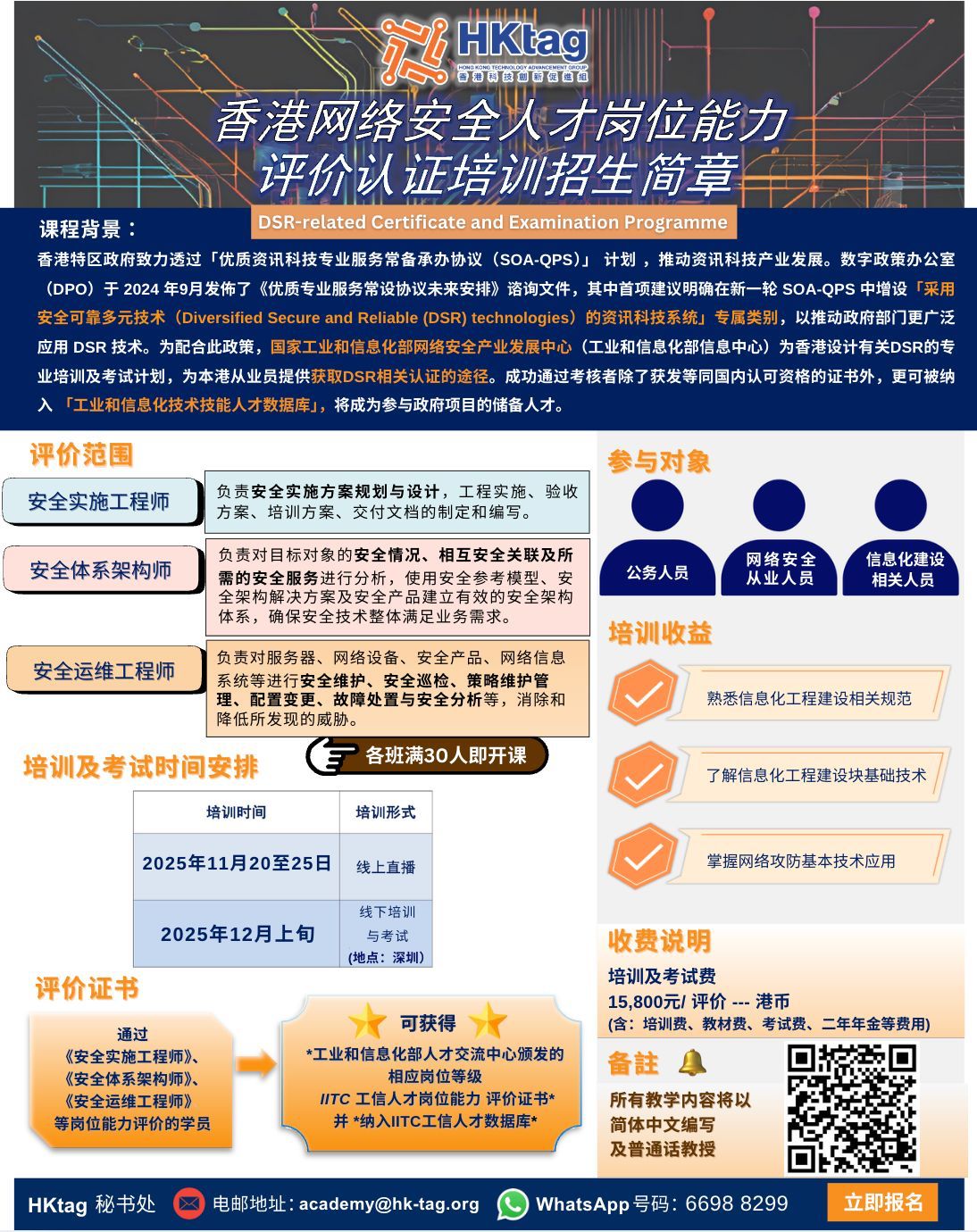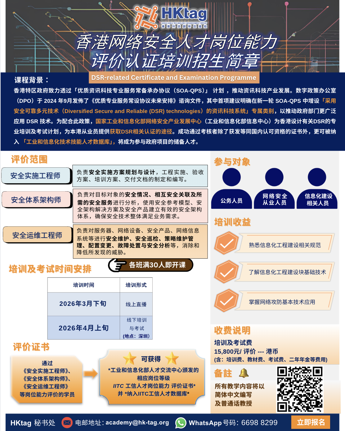 【香港網絡安全產業人才崗位能力評價認證培訓】招生現已接受報名!