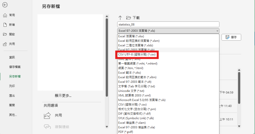 2. Open the file and save as .csv format.