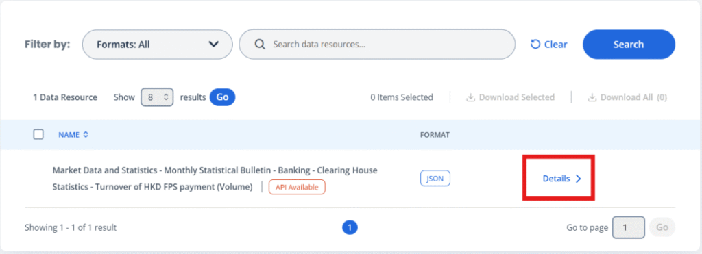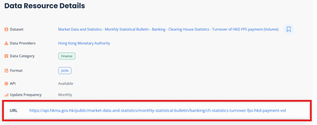 1. Check the data resource details of the API.