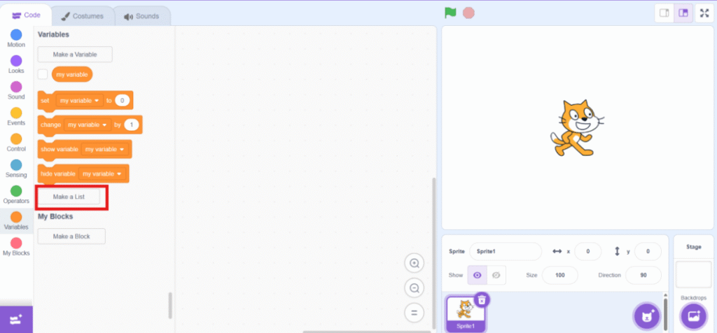 3. To read the CSV file, you need to make a list under “Variable” category.