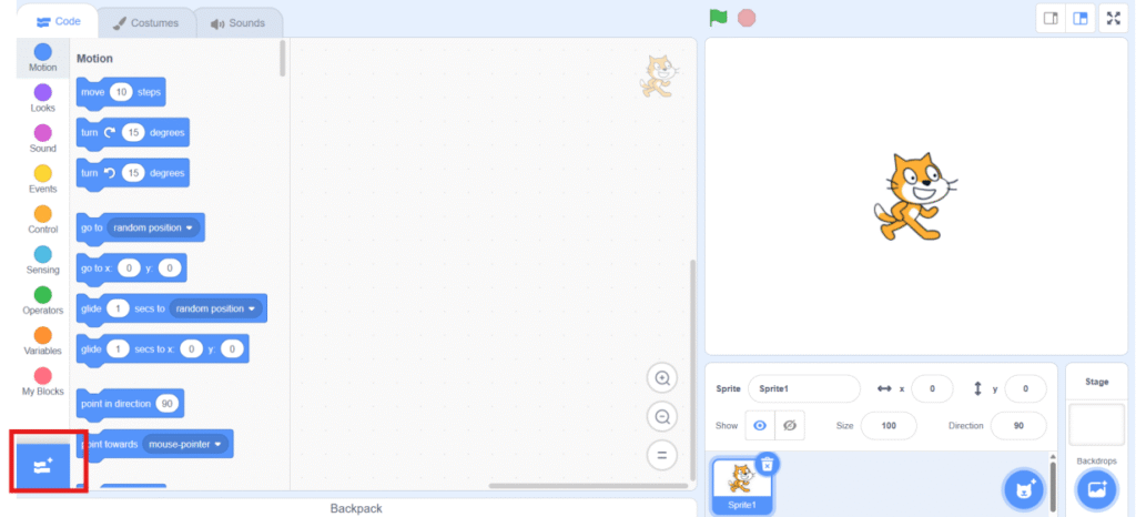 1. Go to Scratch with special Extension (https://osep-scratch.github.io/app/app/)