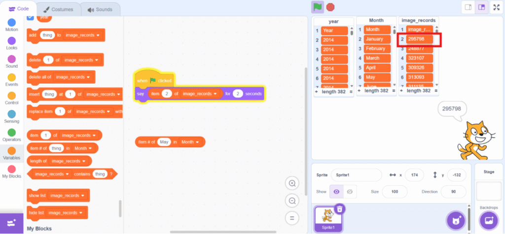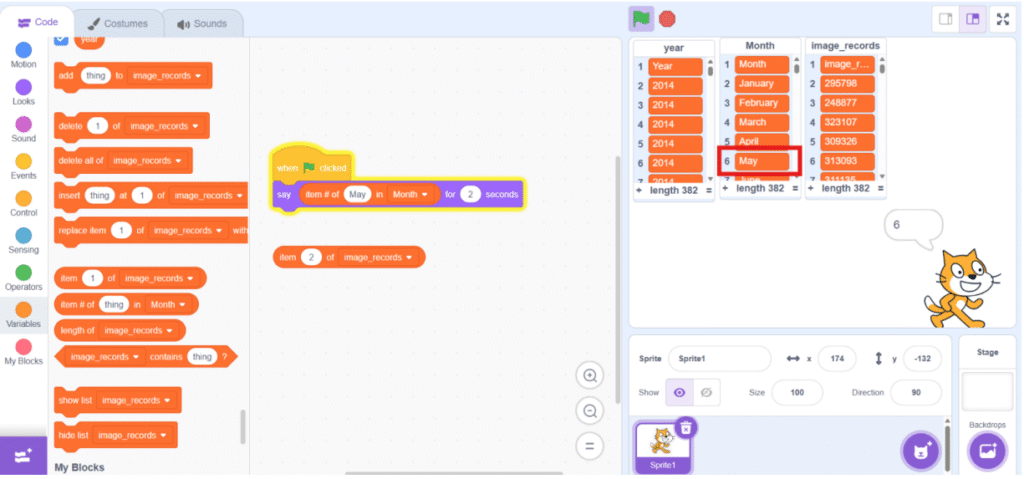 7. Get the data using blocks under “Variable” category.