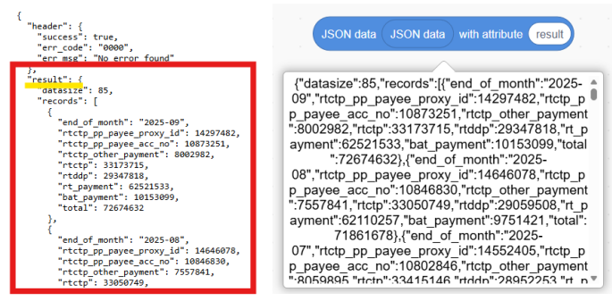4. Get the JSON data using block in “JSON” category.