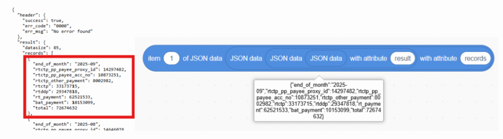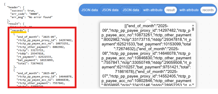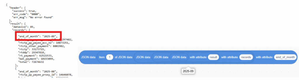 5. Get the targeted data with block. For example, if you want to get the “end_of_month” of the first record: