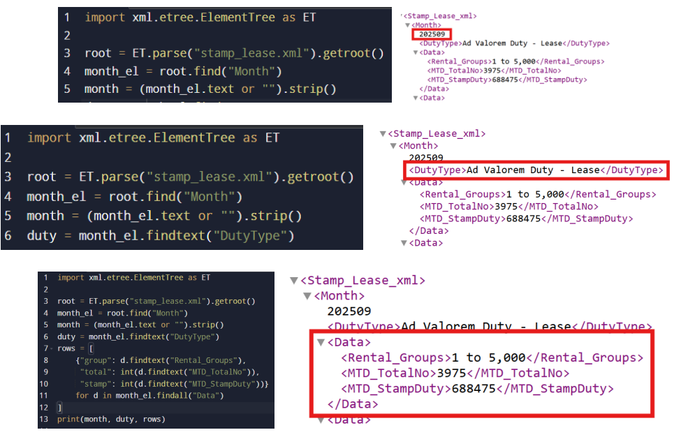 1. Create a project folder (e.g., python-data-reading) and put stamp_lease.xml inside it.