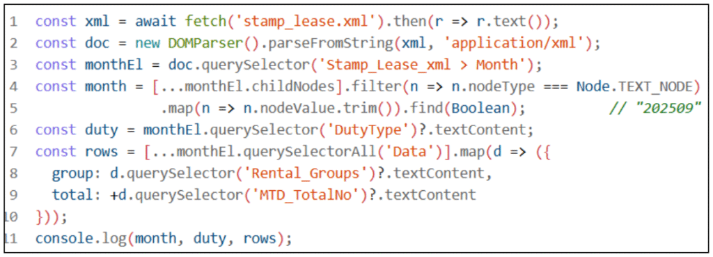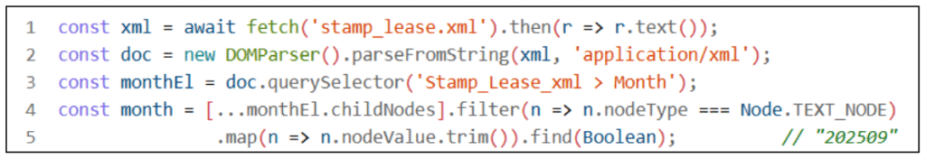 3. Parse with DOMParser(‘application/xml’).