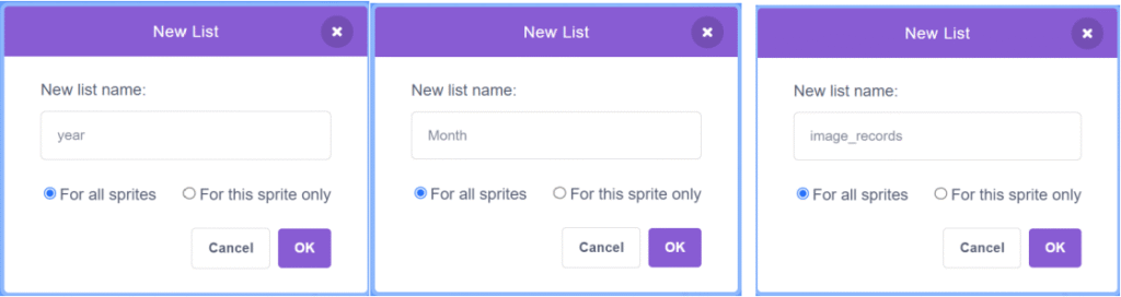 4. Make a list for each column you need to use.