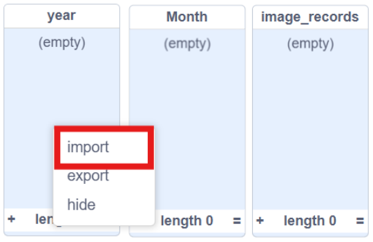 5. Right click on the list and import the open data.
